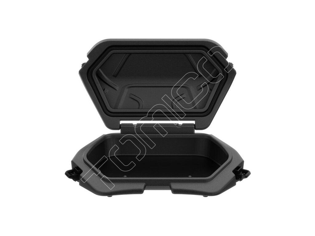Uzamykatelný sedlový box Tesseract o objemu 16 litrů pro čtyřkolky CFMOTO Gladiator X850/X1000 třetí generace (od 2024). Instaluje se pomocí šroubů místo sedadla spolujezdce, madel a zádové opěrky, víko má po obou stranách kovové zámky.